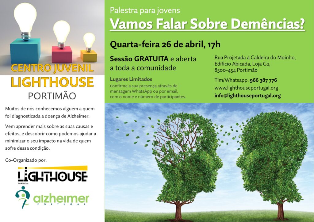 No próximo dia 26 de abril, às 17h00, a Alzheimer Portugal – Núcleo do Algarve irá realizar uma palestra sobre o tema: “Vamos falar sobre Demências?”