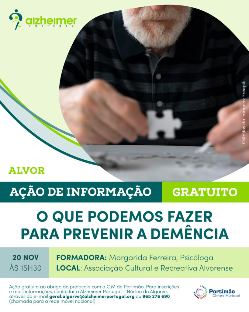 Esta iniciativa é gratuita (ao abrigo do protocolo com a Câmara Municipal de Portimão) e será dinamizada pela Alzheimer Portugal – Núcleo do Algarve.