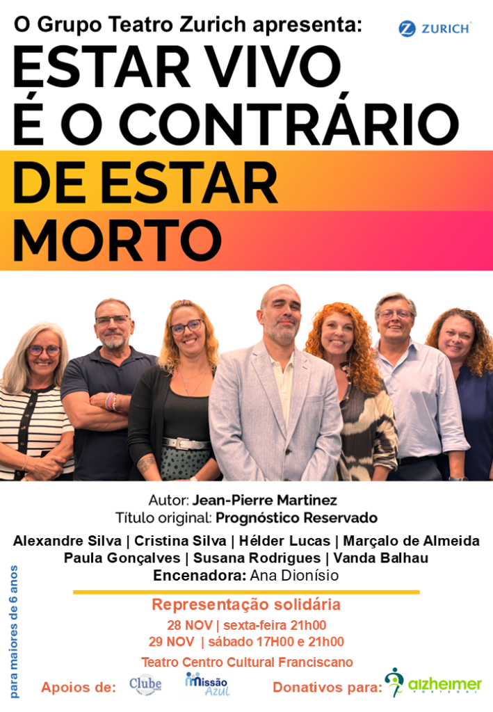 – na aplicação MBWay clique em “enviar dinheiro” escolha o número 968854727 e faça o seu donativo para a Alzheimer Portugal, indicando Espetáculo Solidário “Estar vivo é o contrário de estar morto.”