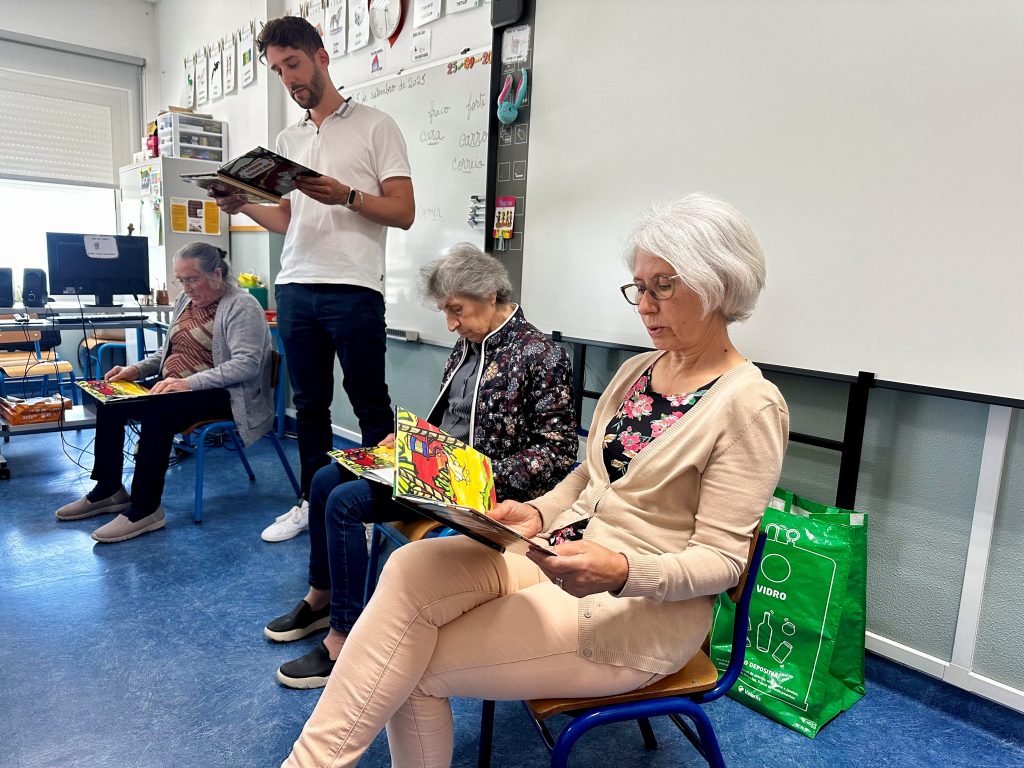 Dinâmica: A leitura da história foi feita por uma ou duas utentes do Centro de Dia, acompanhadas por um Técnico da Alzheimer Portugal, através de uma linguagem lúdica e adaptada à faixa etária, as crianças tiveram oportunidade de compreender o que é a demência, como ela afeta a memória e a importância da empatia e do cuidado para com os mais velhos.