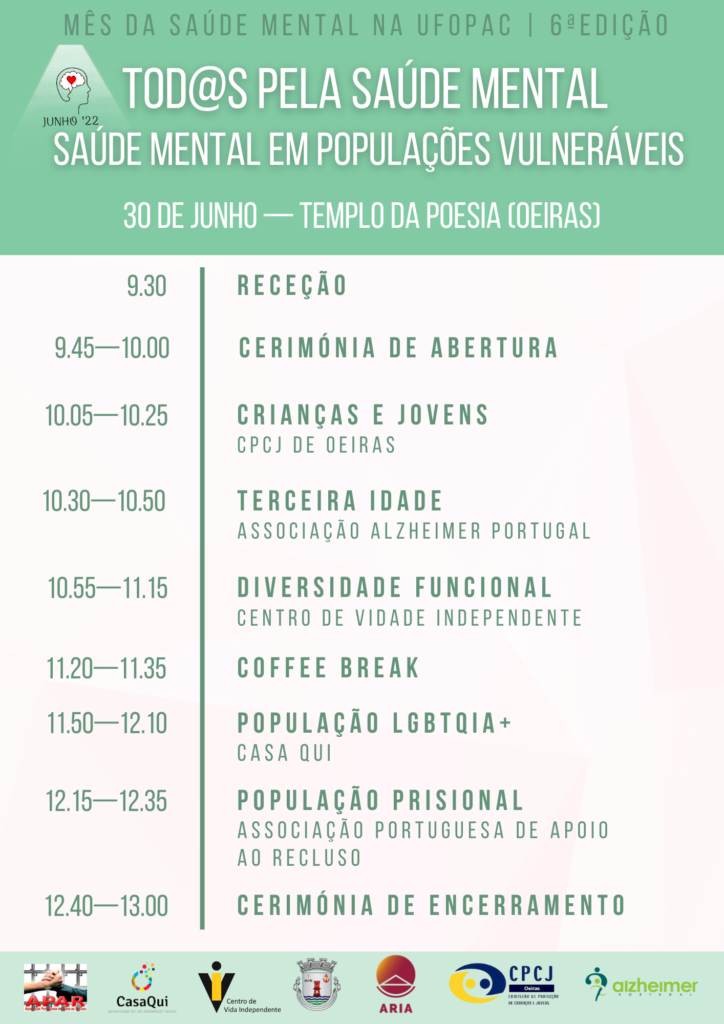 A Alzheimer Portugal é uma das parceiras deste evento e estará presente na Conferência: “Tod@s Pela Saúde Mental!”, que se realizará no dia 30 de junho, das 9h20 às 13h00, no Templo da Poesia.
