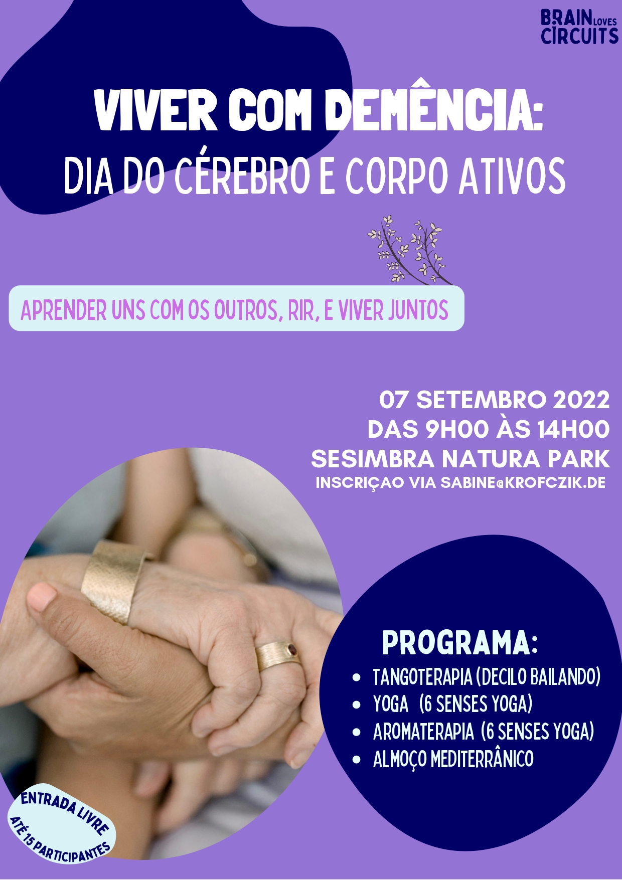 “Viver com Demência: Dia do Cérebro e Corpo Ativos”, é um evento dirigido a Pessoas com Demência e Cuidadores Informais, que se realiza no dia 7 de setembro, das 9h00 às 14h00, no Sesimbra Natura Park.