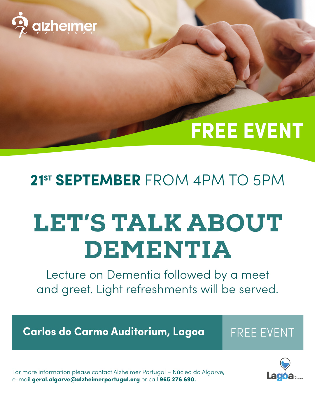 Após várias solicitações, a Alzheimer Portugal – Núcleo do Algarve irá realizar no próximo dia 21 de setembro, das 16h00 às 17h00, no Auditório Carlos do Carmo em Lagoa, um evento destinado à população estrangeira.