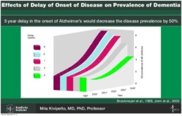 Referiu que estudos epidemiológicos indicam que as demências, incluindo a Doença de Alzheimer, são perturbações multifactoriais com vários fatores de risco modificáveis. Vários fatores de risco vascular, especialmente a meio da vida (por exemplo: elevada pressão arterial, colesterol, obesidade, diabetes, tabaco, depressão) têm sido relacionados com um risco aumentado de demência e Doença de Alzheimer. Por outro lado, fatores relacionados com estilo de vida, incluindo atividades física, mental e social e dieta saudável, podem reduzir o risco. Também fatores psicossociais têm sido apontados como possíveis fatores de risco. A etiologia multifactorial da DA realça a importância de intervenções em múltiplos domínios (farmacológico e não farmacológico) para verdadeiramente atrasar o início da demência.