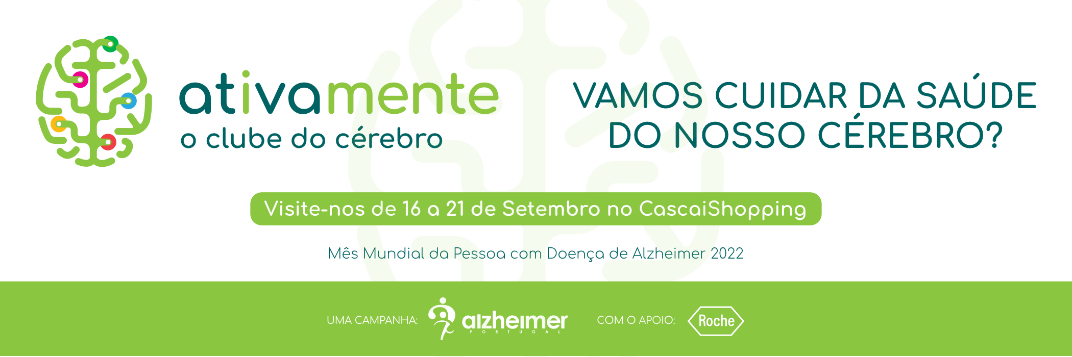 É para informar os portugueses sobre os fatores de risco que se podem alterar e como o fazer que a Alzheimer Portugal, com o apoio da Roche, lança “Ativamente – O Clube do Cérebro”, um espaço interativo no CascaiShopping, onde os visitantes podem aprender a reduzir o risco de desenvolver Demência.