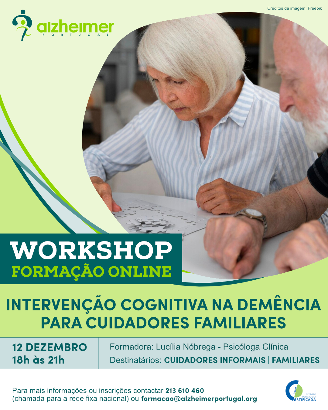 Para mais informações contacte o Departamento de Formação da Alzheimer Portugal pelo e-mail: formacao@alzheimerportugal.org ou pelo telefone: 213 610 460 (chamada para a rede fixa nacional)