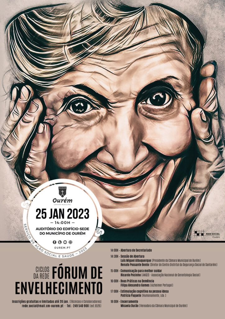 Irá decorrer no próximo dia 25 de janeiro no Auditório do Edifício – Sede do Município de Ourém, o Fórum de Envelhecimento que contará com uma intervenção da Dra. Filipa Gomes da Alzheimer Portugal, sobre o tema: “Boas práticas na Demência”.