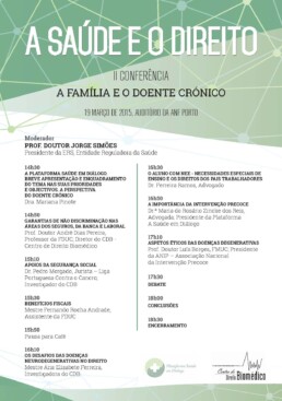 Novamente, trata-se de uma parceria entre a Plataforma Saúde em Diálogo e o Centro de Direito Biomédico da Faculdade de Direito da Universidade de Coimbra, sendo desta feita sob o tema “A Família e o Doente Crónico”