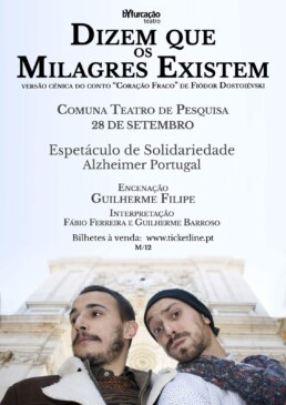 A peça «Dizem que os Milagres Existem» está em cena no Comuna Teatro de Pesquisa de 15 de Setembro a 1 de Outubro, todas as quintas, sextas e sábados às 21.30h.