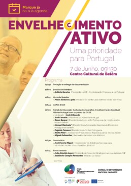 O Conselho Estratégico Nacional da Saúde – CIP vai realizar uma Conferência dedicada ao Envelhecimento Saudável, a decorrer na manhã do dia 7 de Junho de 2017, no Centro Cultural de Belém, na Sala Sofia de Mello Breyner.