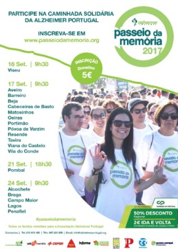 O Passeio da Memória é o grande evento anual da Alzheimer Portugal, que assinala o Dia Mundial da Doença de Alzheimer. Consiste numa caminhada solidária, revertendo os fundos das inscrições na íntegra para a Alzheimer Portugal.