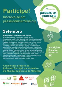 O Passeio da Memória é o grande evento anual da Alzheimer Portugal, que assinala o Dia Mundial da Doença de Alzheimer. Uma caminhada solidária, em que o valor das inscrições (donativo mínimo de 5€ por participante) reverte a favor da Alzheimer Portugal.